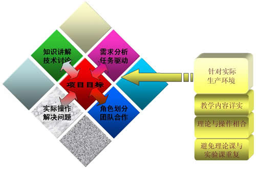 以工程經驗為指導,強化實戰技能,通過可以滿足企業需求的項目來展開整個教學過程。目標教學法”從實際工作內容出發,以應用項目目標為核心,使學員在掌握系統知識的同時,培養較強的實際應用能力和綜合解決問題的能力和學習的能力;強調學員的參與性和團隊合作精神,全面提高學員的溝通能力 、自學能力和分析判斷能力;實行終結性考核與過程性考試相結合的方式,把實踐能力和項目能力納入考核范圍。在這種新的教學理論中, 教學方法與教材的組織結構、授課順序,以及具體的授課方法和要求相結合,從而確保教學目標的實現。