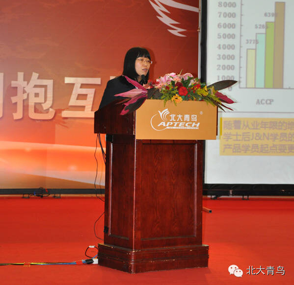 第三位分享的老師是北大青鳥APTECH教學(xué)就業(yè)總監(jiān)、就業(yè)部經(jīng)理王麗琴。她報(bào)告的主題是:夯實(shí)質(zhì)量基礎(chǔ) 延伸宣傳價(jià)值。為2015年的教學(xué)工作、就業(yè)工作和學(xué)員管理指明了方向。